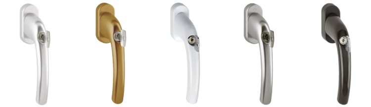 EINBRUCHSICHERER GRIFF (mit Schlüssel) – nach dem Herausziehen des Schlüssels ist ein Drehen des Griffs unmöglich – das sichert vor dem Öffnen des Fensters von außen, standardmäßig bei einbruchsicheren Beschlägen der Klasse WK-2. Der Griff, ähnlich wie der Griff mit Druckknopf wird auch für Balkontüren auf Stockwerken empfohlen, um einem ungewünschten Öffnen durch Kinder vorzubeugen.