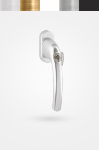 EINBRUCHSICHERER GRIFF (mit Schlüssel) – nach dem Herausziehen des Schlüssels ist ein Drehen des Griffs unmöglich – das sichert vor dem Öffnen des Fensters von außen, standardmäßig bei einbruchsicheren Beschlägen der Klasse WK-2. Der Griff, ähnlich wie der Griff mit Druckknopf wird auch für Balkontüren auf Stockwerken empfohlen, um einem ungewünschten Öffnen durch Kinder vorzubeugen.